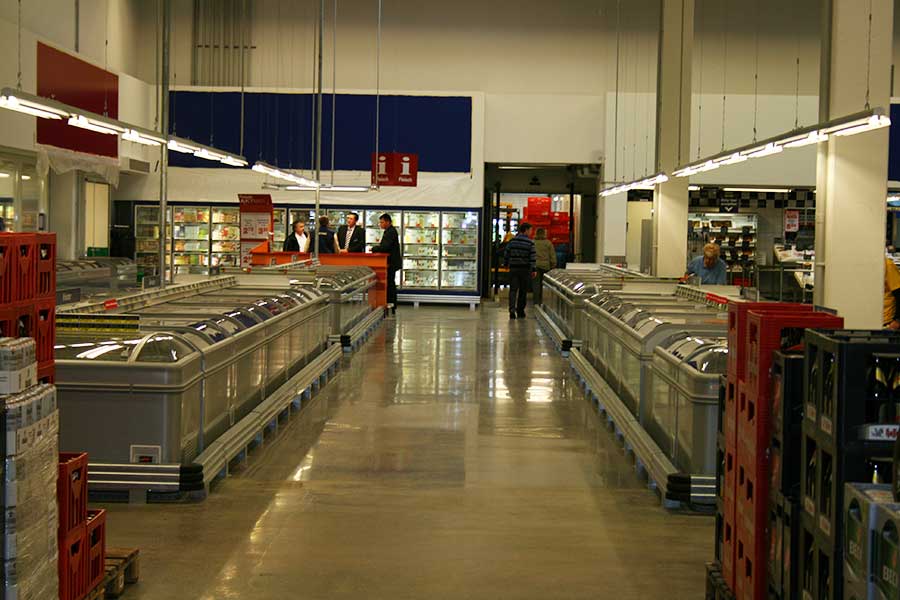 Das Polieren von Beton sorgt für einen fast spiegelglatten Boden. Der ideale Fussboden für industrielle und öffentliche Räume ist polierter Beton. Seine glatte Fläche lässt sich leicht reinigen und bietet optimale Bedingungen z.B. für Gabelstapler-Verkehr. Der Boden erhält durch die Politur eine harte und äußerst widerstandsfähige Oberfläche. Der polierte Boden besteht aus reinem Beton und kommt ohne Beläge aus. Der Aufwand für Wartung und Instandhaltung beträgt nur einen Bruchteil dessen, was für z.B. Kunstharzbeschichtungen notwendig ist.